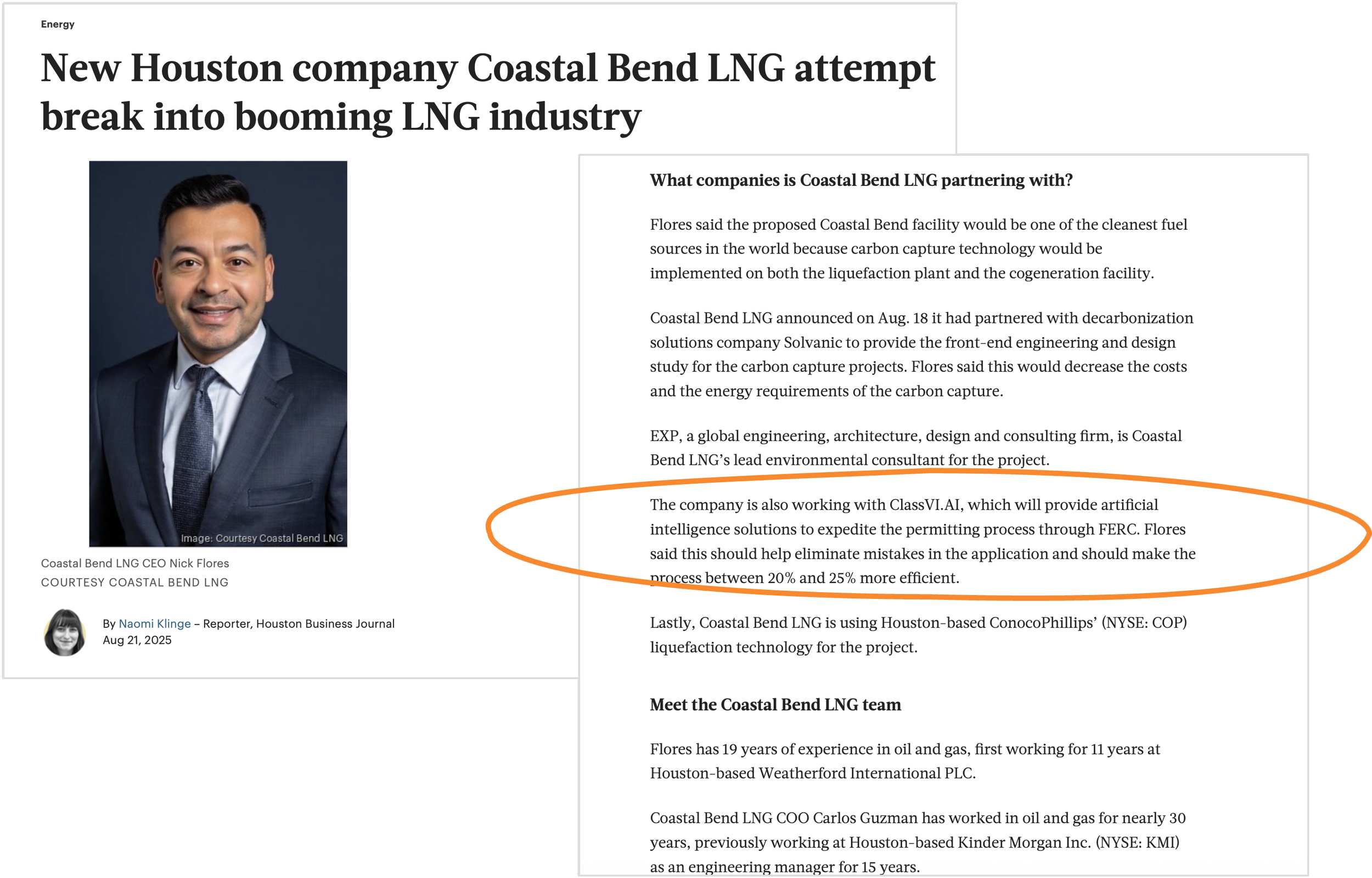 First customer told the Houston Business Journal that, thanks to our help, their FERC pre-filing process up to 25% more efficient.
